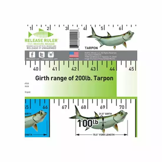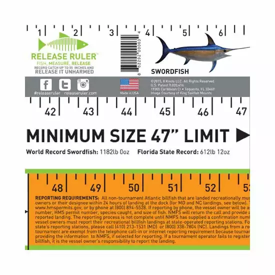 Prop 65 Warning CA8KT-RULER – The Release Ruler features a PVC coated vinyl strip with a brass ring at each end. To help measure the fish you have caught. Put a small lure at one end of the ruler attached to the brass ring. Lay the strip out alongside the fish and run your gaff hook thru the other brass ring to get a measurement. Fish Rulers available for: Atlantic Sailfish, Pacific Sailfish, Mako, Marlin, White Marlin, Swordfish and Tarpon. C87-11257,C87-11256,C87-11251,C87-11255,C87-11254,C87-11253,C87-11250,C87-11252