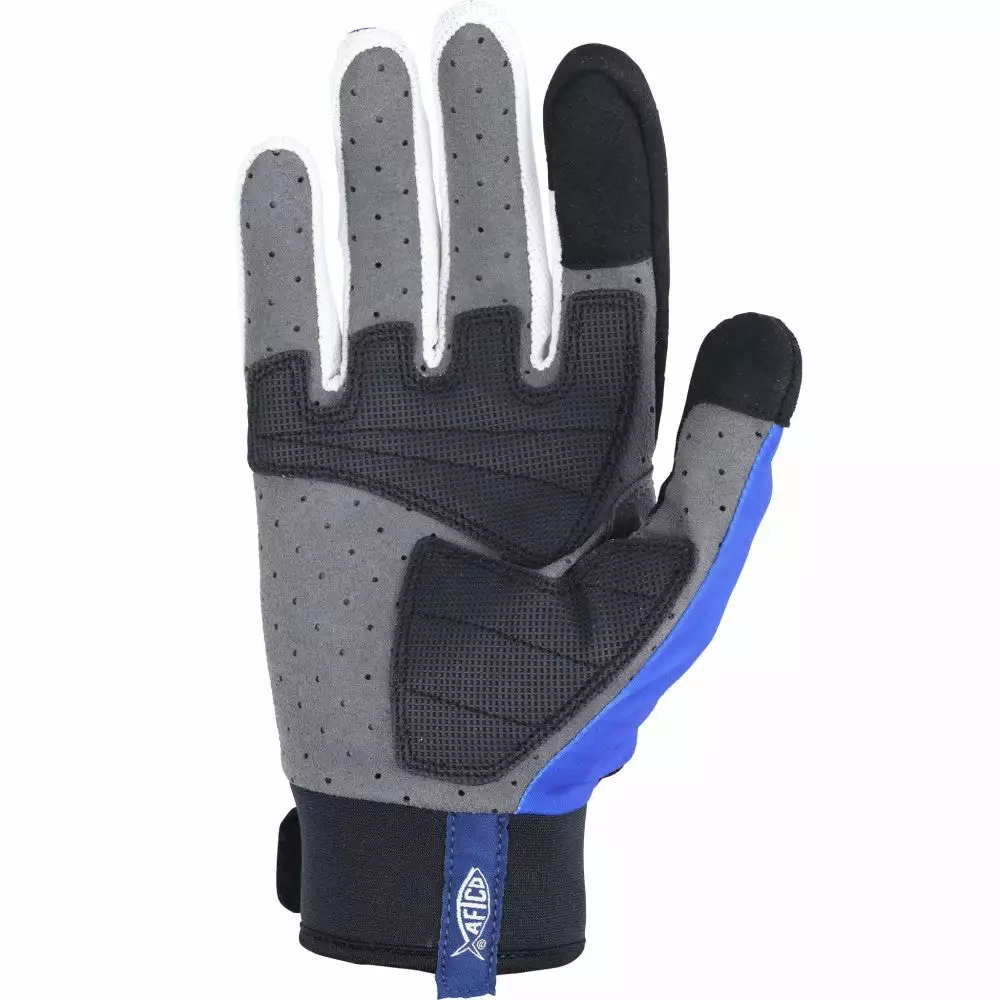 Prop 65 Warning CA Aftco Blue Jigpro Gloves. Slow pitch jigging has came onto the scene in a big way as it has proven to be an absolutely deadly technique for bottom fishing and pelagics alike. Properly working your slow pitch jig’s leaf style presentation is paramount. AFTCO’s JigPro gloves help to prevent fatigue on your hands that also translates to strain to your arms and upper body. AFTCO developed JigPro with the direct feedback from AFTCO Pro Benny Ortiz who is renowned for his jigging prowess. The end result is a lighweight, yet sturdy glove that is comfortable to wear for a full day on the water. JigPro is reinforced at all the right places to alleviate pinch points and reduce strain from the presentations that jigging requires: hours on end of palming the reel, guiding braided line back onto the spool and continuous manipulation of the reel handle to entice bites deep into the water column. If you are a jedi jigging enthusiast or a novice, your hands will thank you after a full day of using AFTCO JigPro gloves.