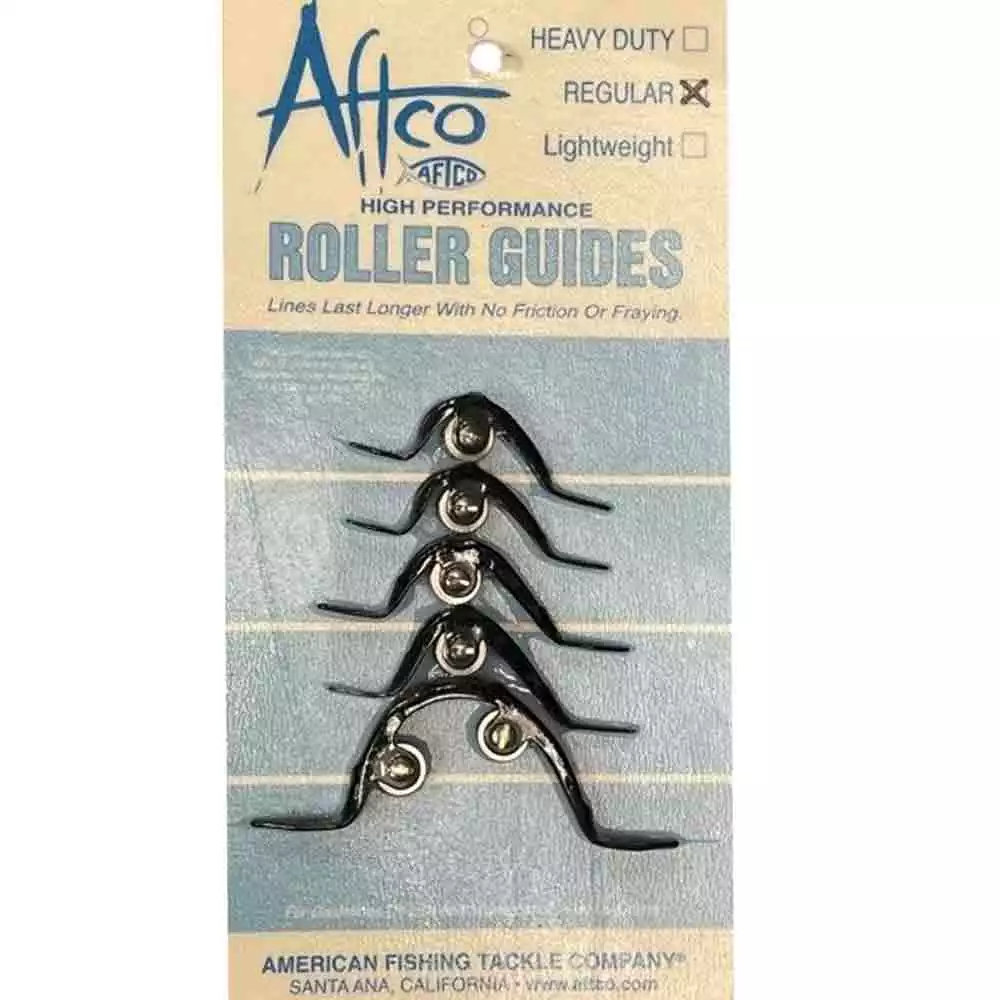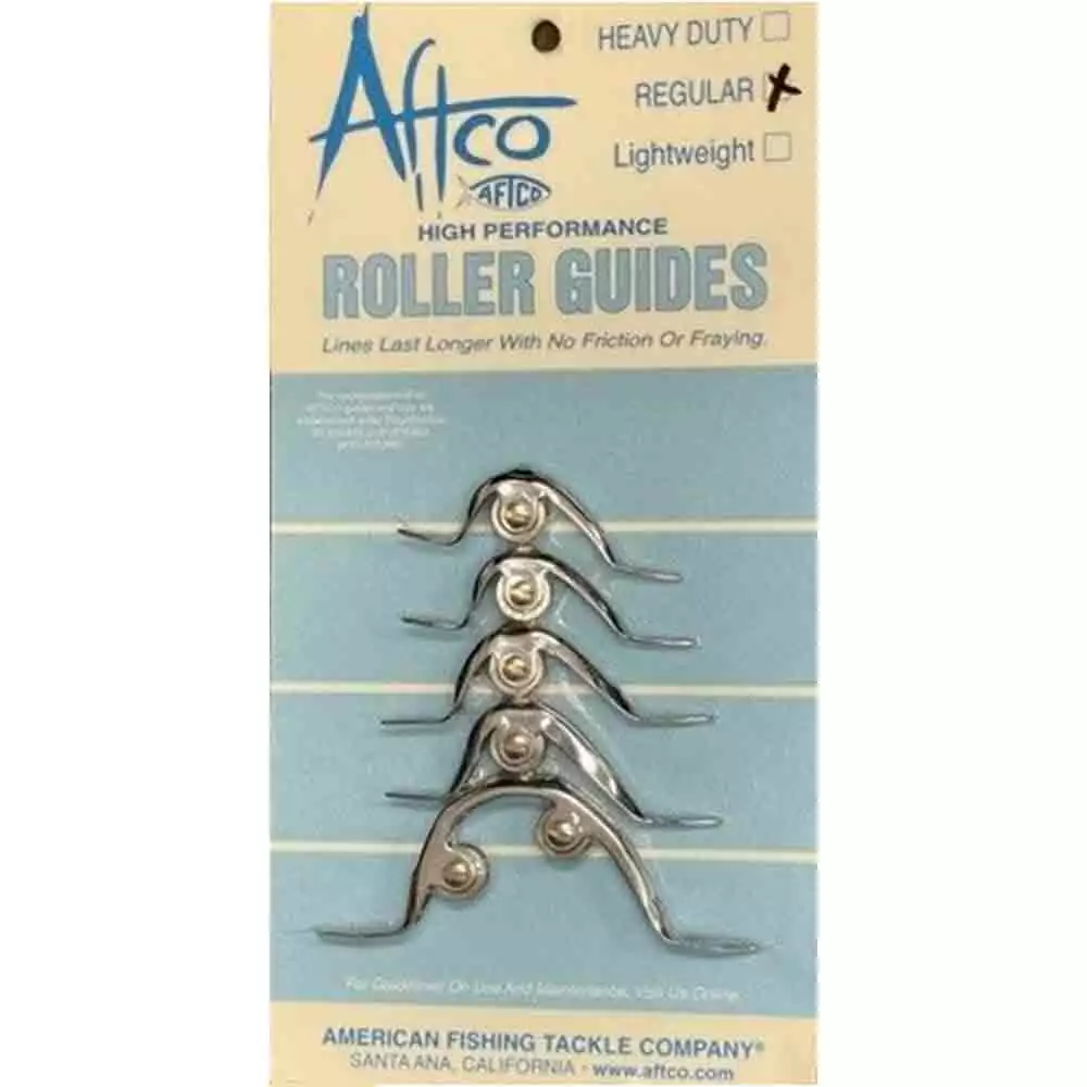 For 16 to 50-lb trolling and deepwater rods, AFTCO’s Regular roller guides are ideal for light line bluewater trolling, and for deep water live-bait or jigging rods rated for 16 to 50-lb. lines. Each features AFLON(tm) high performance bearings. Standard roller tip-tops match up perfectly with these guides. Complete Set of 5.