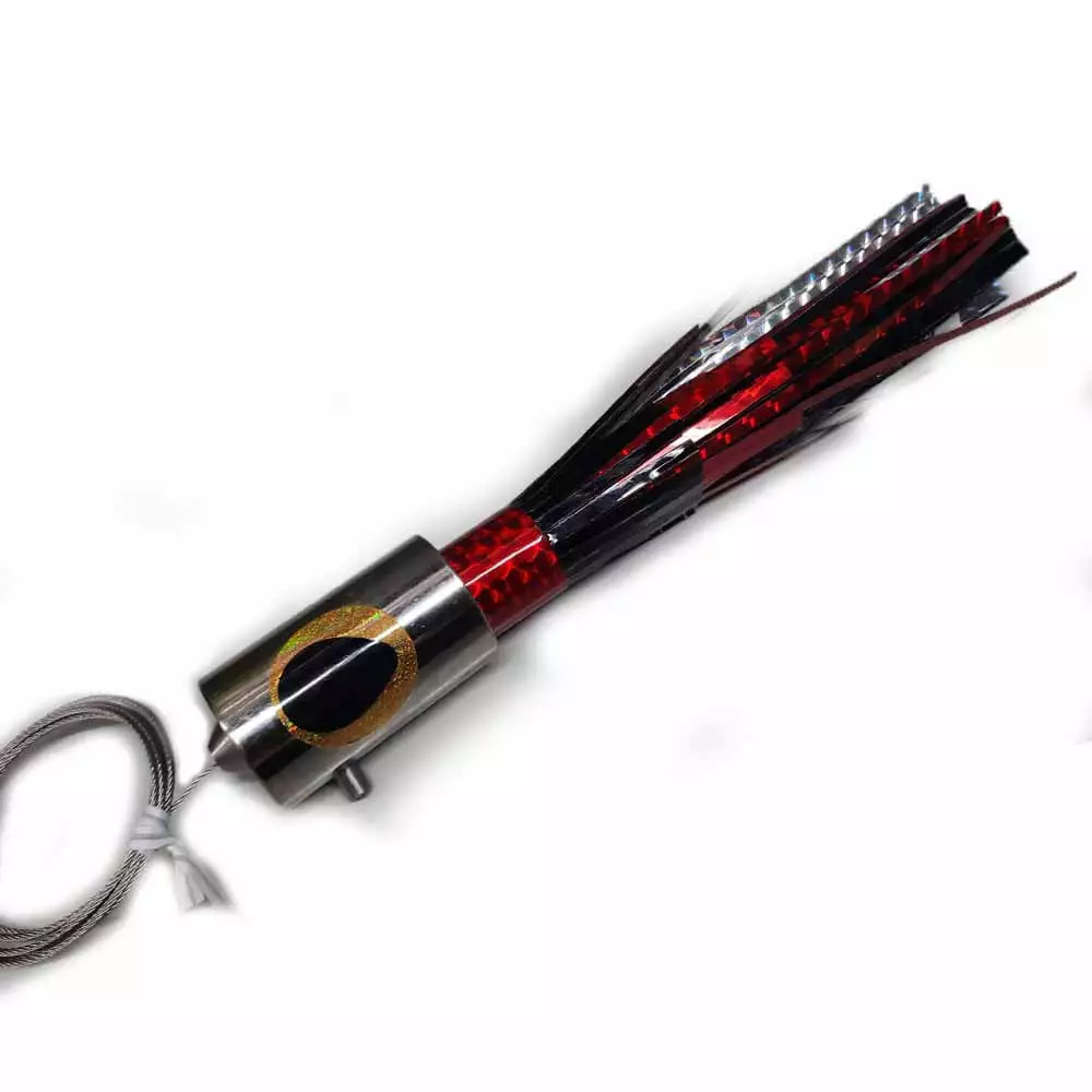 The Mini Bell 8oz Ballyhood “Cowbell” Hi-Speed Wahoo Lures are made from the finest materials available. Quality construction using polished chrome over brass, all lures are sold rigged and ready to fish! Using American 480# stainless steel cable leaders with a single 9/0 hook and double crimped. Ballyhood Hi-speed Wahoo Lures are designed to troll fast and below the surface. They can be trolled 14-20 knots with no trolling weight needed. The opened faced head provides virtually no resistance and keeps the lures running at high speeds.