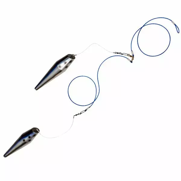 The Boone Lulu 13.5in 2-Pin Rigged Ultimate Pin Teaser is designed with simplicity and ease of storage in mind. We’ve put the individual pins on their own snap-on leaders, and added drop swivels to the main teaser line.