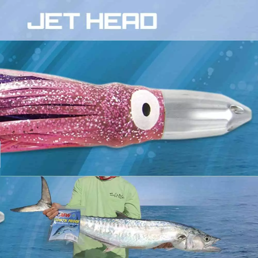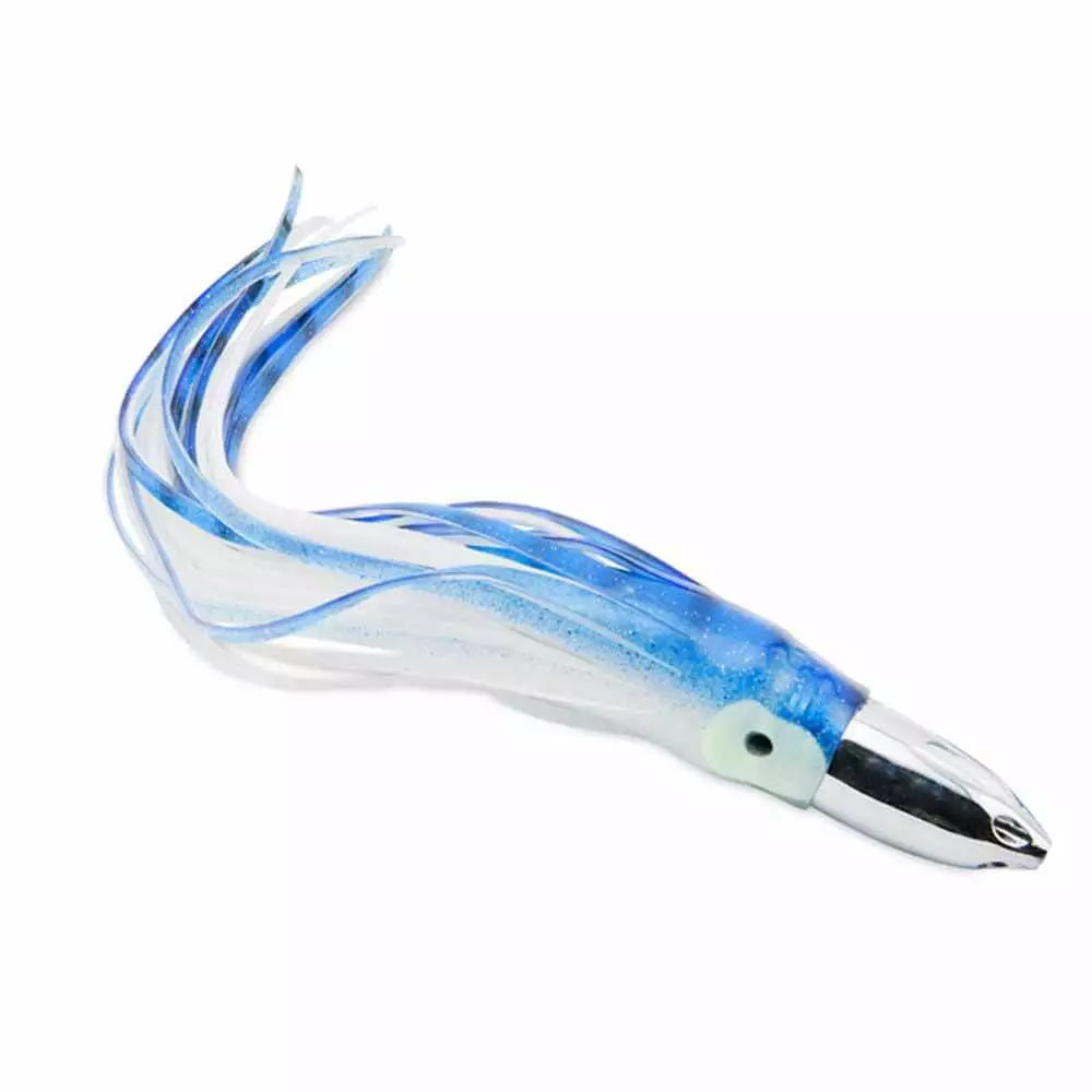 This all-time favorite lure, the C&H Jet Head, has a chrome head with extra holes that produce a stream of bubbles below the surface of the water. The pointed and weighted head allows the lure to run straight and deep, putting it in the hot zone. Troll plain or with natural bait.