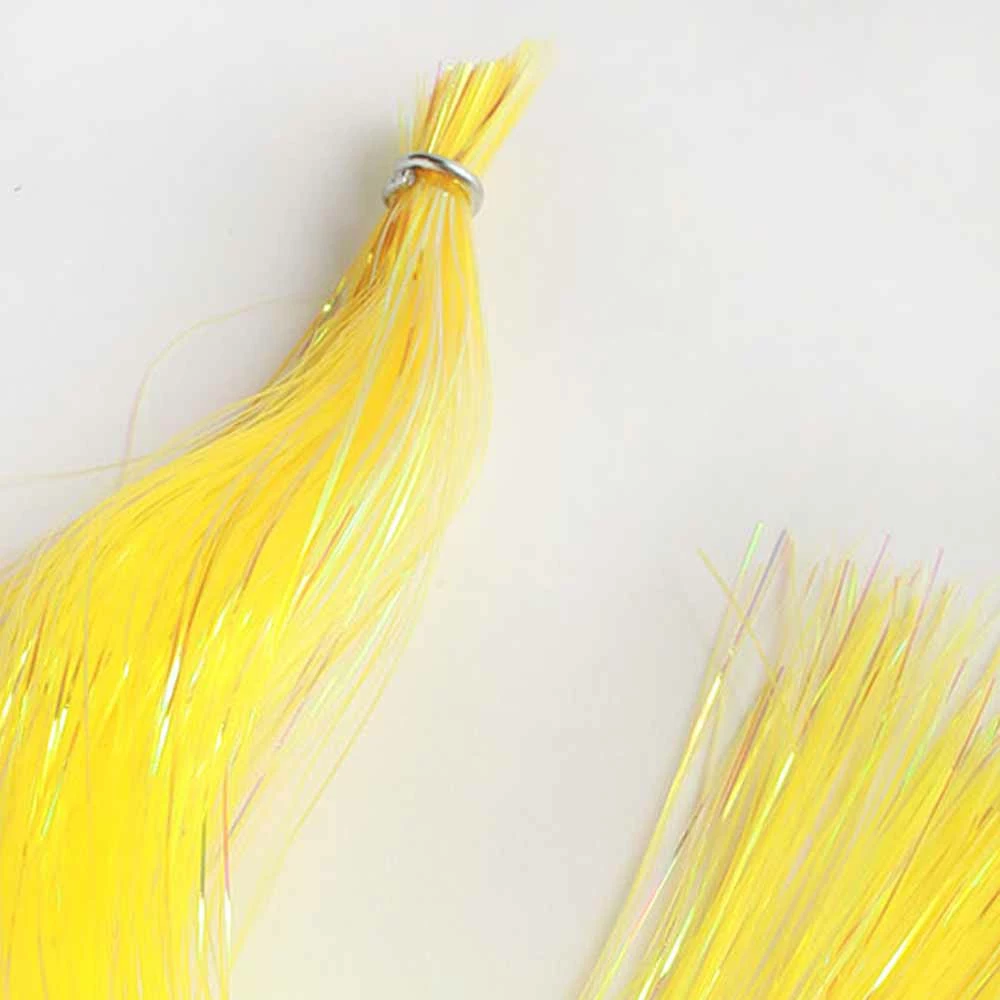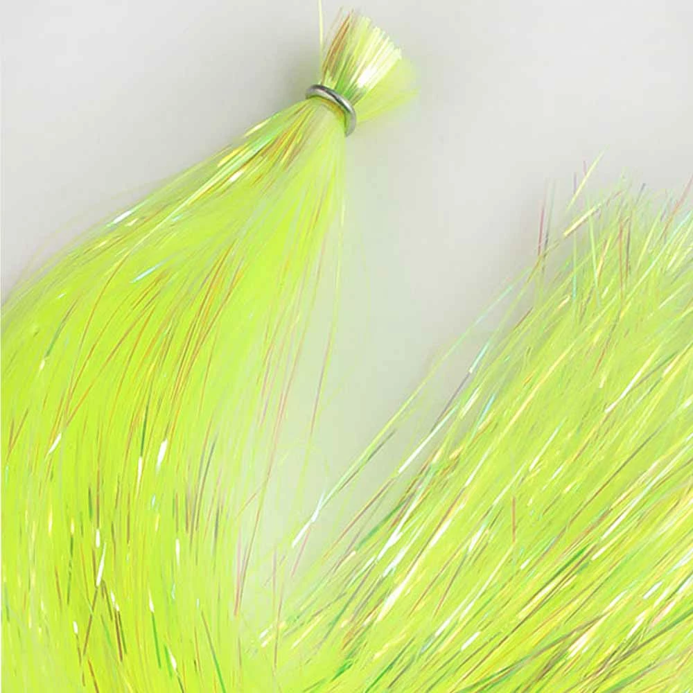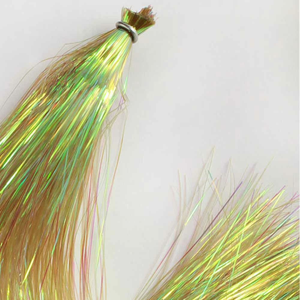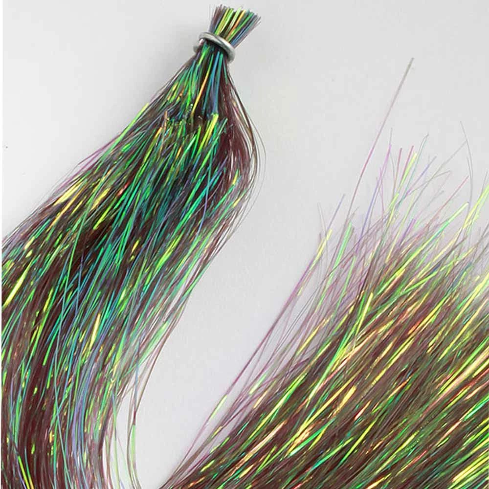 This is the only Flashabou you will ever need. There is no reason to get expensive. Its as easy to tie with as anything and the dyed pearl effect gives it something extra over standard Flashabou