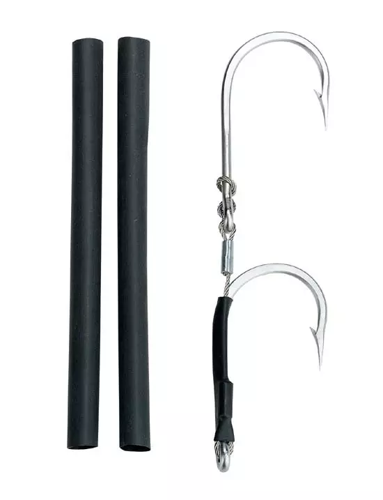 Prop 65 Warning CABlack Shrink Tubing.Used to slide over crimps for smooth finish and also used to make a stiff rig. Rig not included. 4ft length.