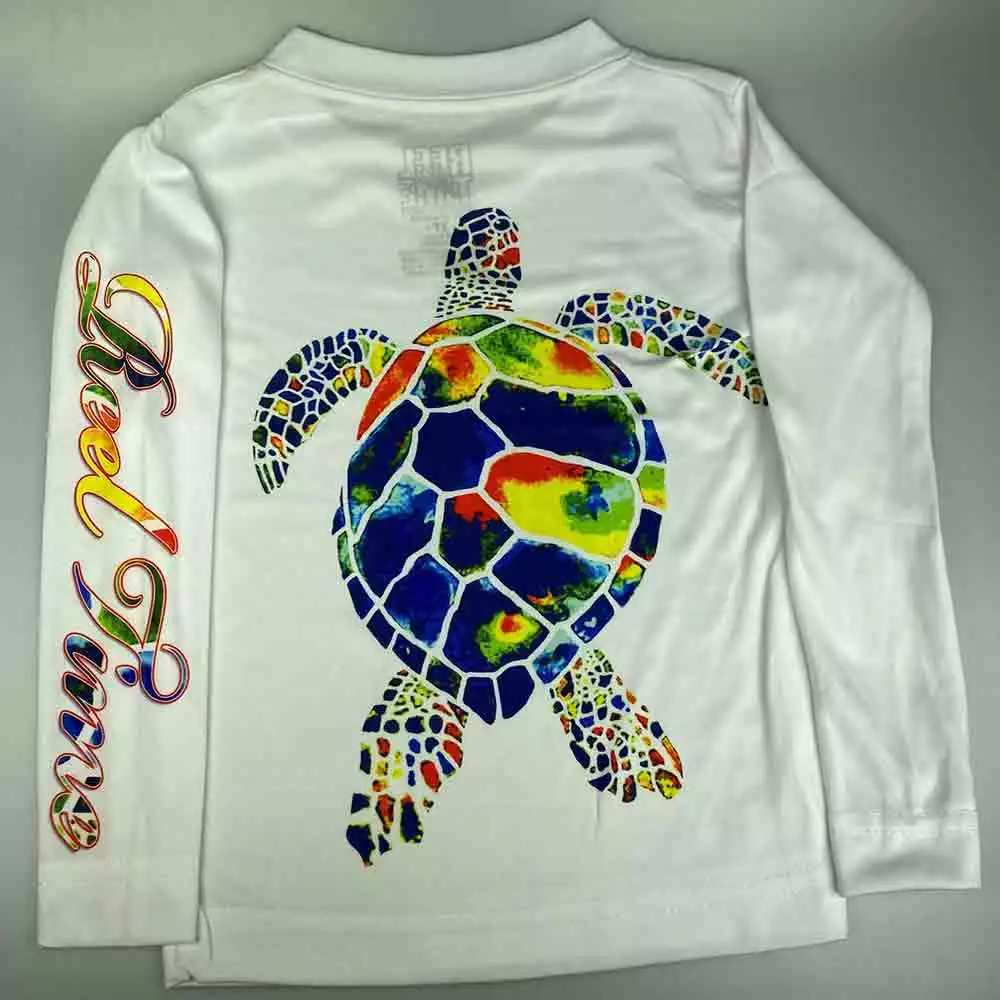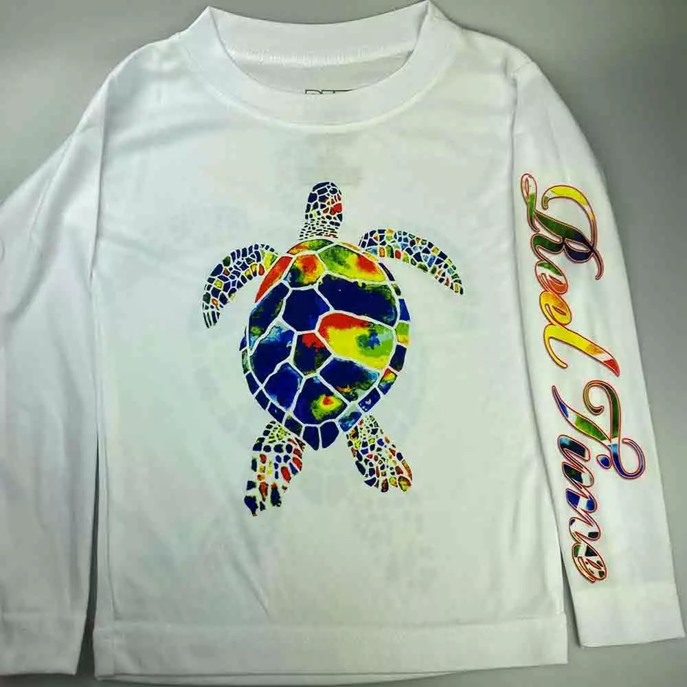 Prop 65 Warning CARTG-F501Y-LS – Youth L/S Turtle Performance Shirt UPF50. Real-time long sleeve shirts are engineered for a day on the water and are: Sun protection UPF 50 blocks UV rays, Drift keeps you dry and comfortable, Stain Release. Design is sublimated into fabric which intern no cracking or peeling so design is permanent.
