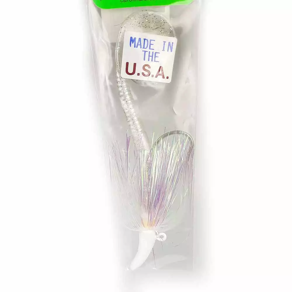 Prop 65 Warning CAFlash Jigs from Carolina Lures are fantastic lures for catching Snook, Striped Bass, Tarpon, Cobia, Grouper, Snapper, and even Lake Trout. In fact, these jigs catch practically everything that swims because fish simply can’t resist them. The combination of a pearl flash skirt and a swimming curl tail worm causes the fish to viciously strike these lures time and again. This hydro dynamic shaped jig head works like a tiny planer to get the jig down deep quickly in the strike zone. Because of this hydro dynamic advantage, you can now use a lighter weight jig to reach greater depths