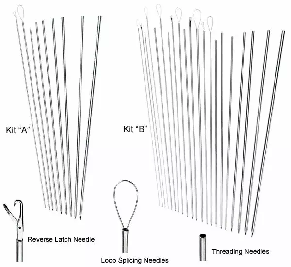 Prop 65 Warning CAThe Capt. Harry’s Needle Set features One Medium Reverse Latch Needle, One Medium Loop Splicing Needle and Seven Threading Needles: 80lb, 100lb, 130lb, 150lb, 200lb, 300lb and 400lb.