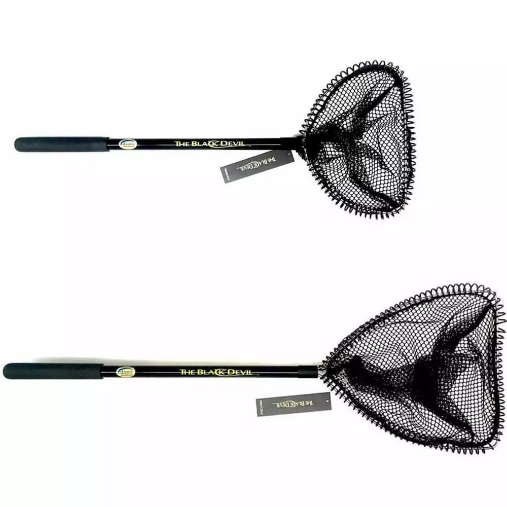 The Danco Black Devil Bait Net is a premium quality bait net. It features a coil bound stainless steel frame design which helps protect both bait and net. The handle is aircraft grade aluminum that has a comfortable slip resistant grip. Durable and rot resistant nylon net. These nets will reach into most baitwells and should be compact enough to store most anywhere.