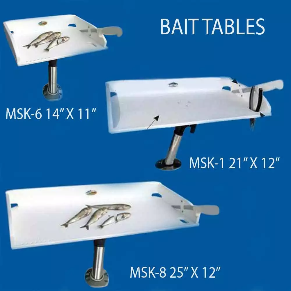 Deep Blue Marine Products Multisystem Bait Table. The interchangeable deep blue multisystem is the next generation in rod holder accessories. Features an easy-to-use swivel mount to fit in any rod holder and folds flat for easy storage. Ideal size for bait. Also features 100% marine-grade polymer, cut out corners for drainage, knife strap and plier holder. Includes bait table and rod holder swivel mount. Does not qualify for free shipping.