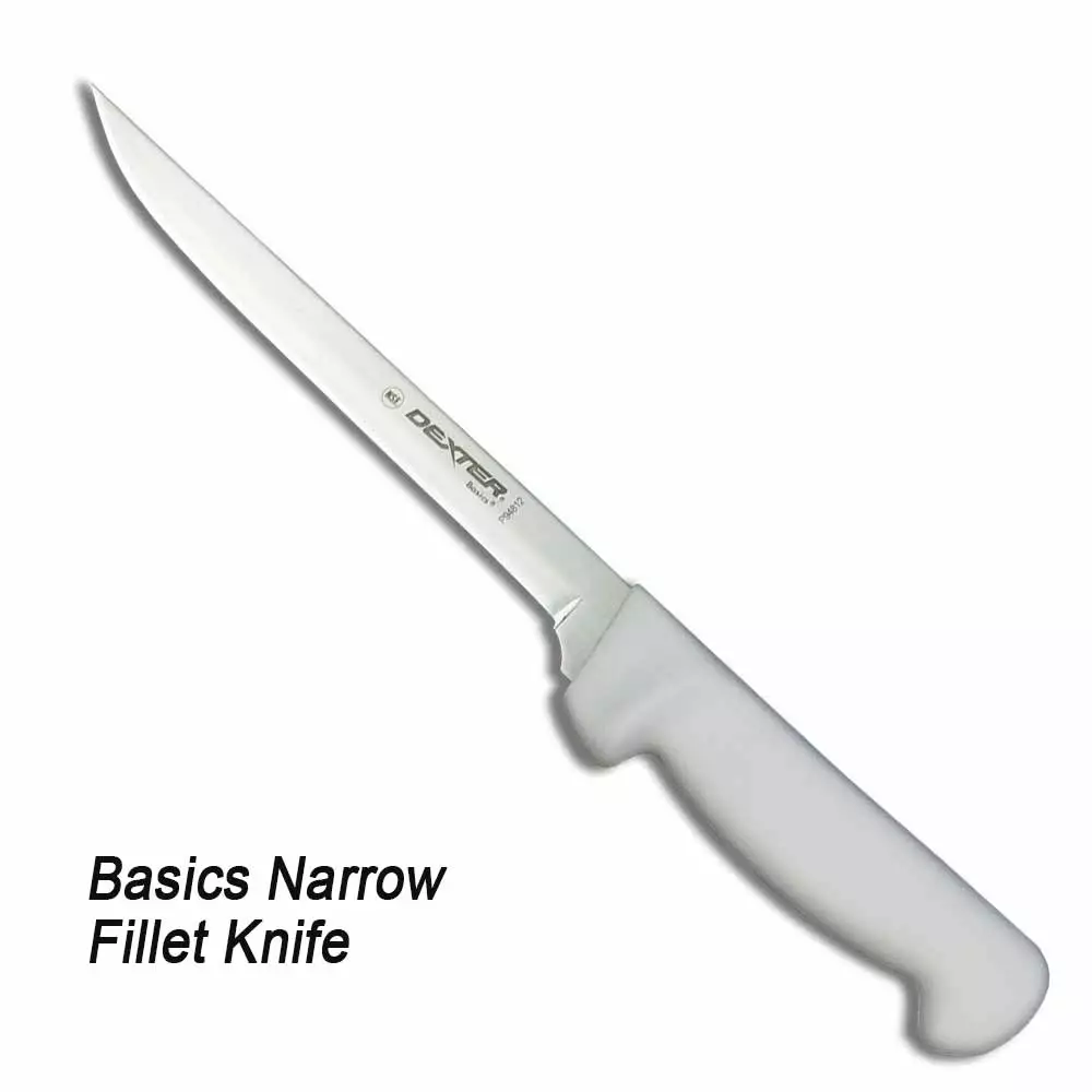 The Dexter Basics Narrow Fillet Knife offers performance and value at an affordable price. The Basics blades are made of stain-free, high-carbon steel with a superior blade shape, as well as superior edge retention. These handles are constructed with a nonslip polypropylene handle for your safety. Each knife is made with a hollow point edge allowing for easy maintenance and rapid re-sharpening. Cutting on a budget will never feel so good, with the Dexter Basics product line. NSF Certified.
