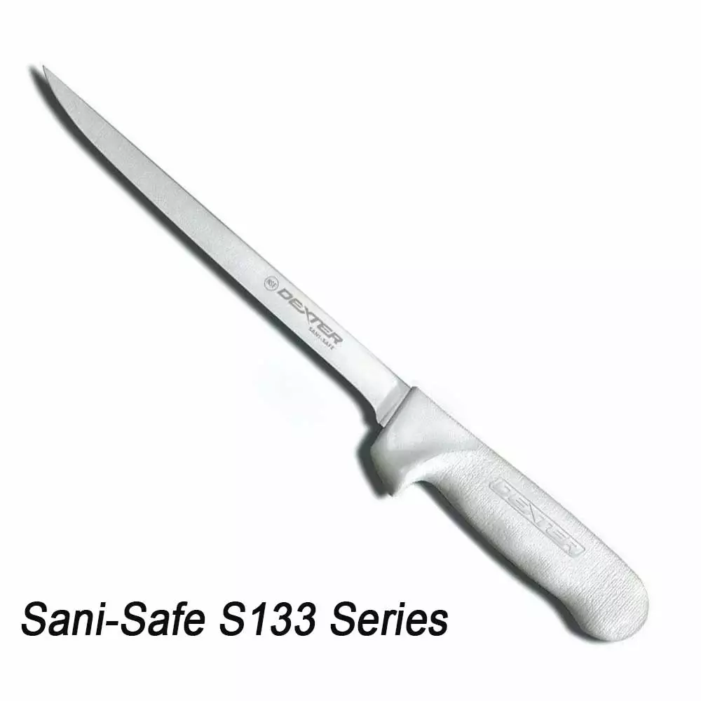 Dexter Sani-Safe Fillet Knife signature white handles feature a textured, slip-resistant, easy to clean polypropylene handle that withstands high and low temperatures. The impervious blade to handle seal provides the utmost in sanitary qualification and earns the NSF seal.