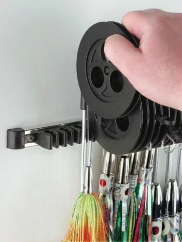 Prop 65 Warning CAComplete Kwik-Lure & Leader Keeper 12pk with Tracks. Storing your trolling rigs and leaders has never been easier. Keep your rigs at your fingertips and eliminate those messy tangles. Hook slides into a 9″ keeper, wind leader around spool, rubber wedge holds in place and keeps rigs together on a track. Suction cup or screw mount. Comes complete. Extra suction cups and keepers available.