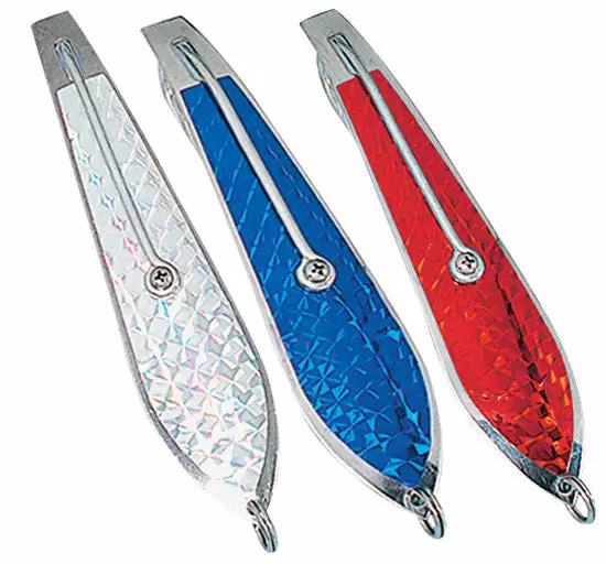 Eco Lure Spoons feature stainless steel split rings, stainless steel screw and nut to secure a 9/0 Mustad Hook, and a stainless steel blade size 3 1/2 (5 1/2 inch blade). Eco Lures are highly recommended by fishermen for King Mackerel, Bluefish, Striped Bass, and Cobia.