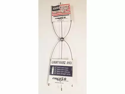 The Fish Razr light wire dredge bars are the perfect choice for lighter bait applications. The light wire allows for pulsation of the dredge while being trolled at speed. Idea for natural bait dredges, strips and other lighter drag baits. All bars are 6arm, made of .093 US stainless steel. The 22” and 32” bars have 2 loops per arm. The 36” bar is available with straight arms for swivel sleeve applications.