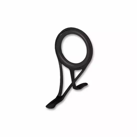 Prop 65 Warning CACeramic Double Foot Rod Guides. Featherflex casting or spinning guides. Black stainless steel, stamped frame, aluminum oxide ring with black nylon shock ring.