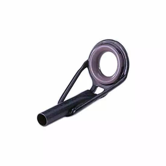 Prop 65 Warning CACeramic Spin Top Rod Tip. Black stainless steel wire frame, aluminum oxide ring, with a black nylon shock ring.