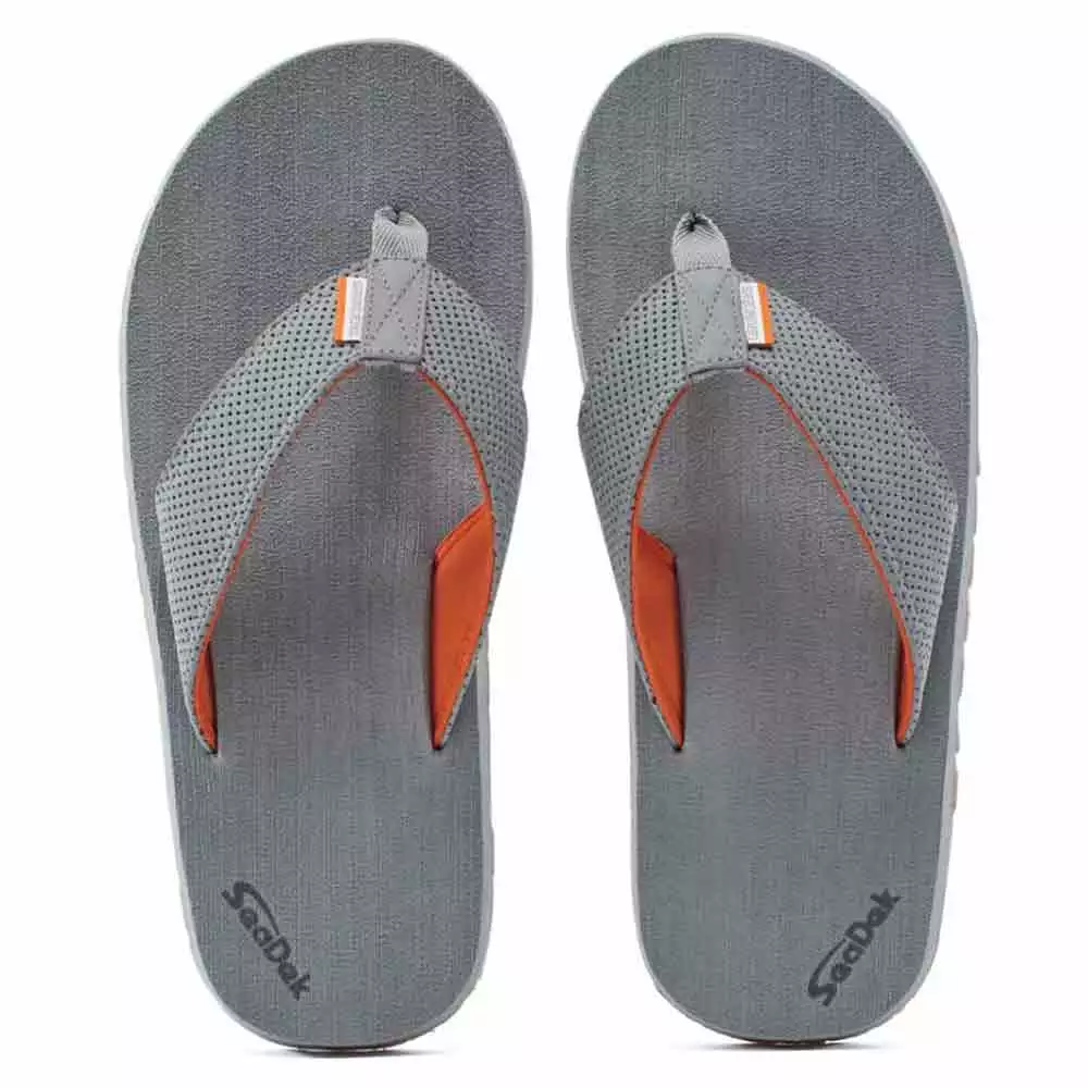 Minimal investment and maximum comfort. The Grundens Deck-Hand Sandal is truly where lifestyle meets performance and collaborating with SeaDek™ Marine Products has helped us deliver an incredibly durable shock absorbent sandal with a cool clean aesthetic. The SeaDek™ foot bed and razor siped natural gum rubber outsoles combine incredible cushioning with superior traction on wet surfaces. Added anti-microbial properties ensure you’ll leave the stench outside. Monument Grey.