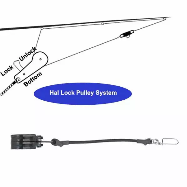 Prop 65 Warning CAHal Lock Double Locking Pulley. Double locking pulley that is simply used on your Outriggers. Just a push with your thumb and it locks the line in place. Black. Sold individually.