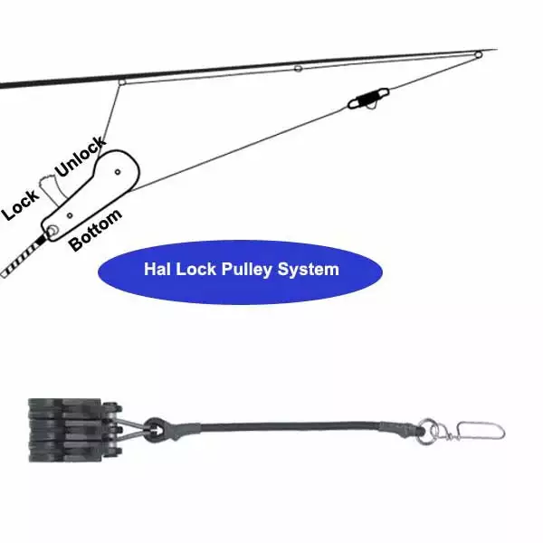 Prop 65 Warning CAHal Lock Triple locking pulley that is simply used on your Outriggers. Just a push with your thumb and it locks the line in place. Black. Sold individually.