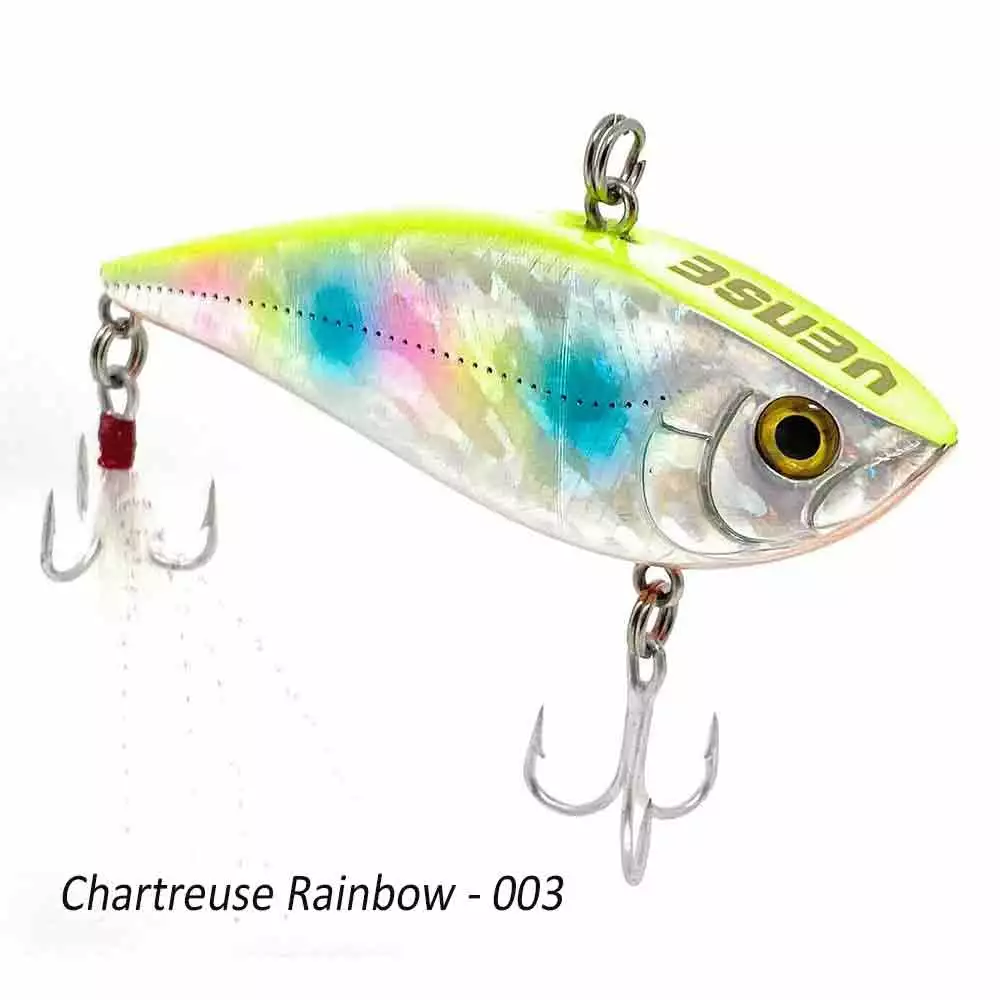 The Vense Raptor Tungsten 70TG Rattling Lure is built with a unique tungsten sound chamber that produces a distinctive double-tapping cadence on the retrieve. This noise is totally different from standard floating rattles, making all the difference.