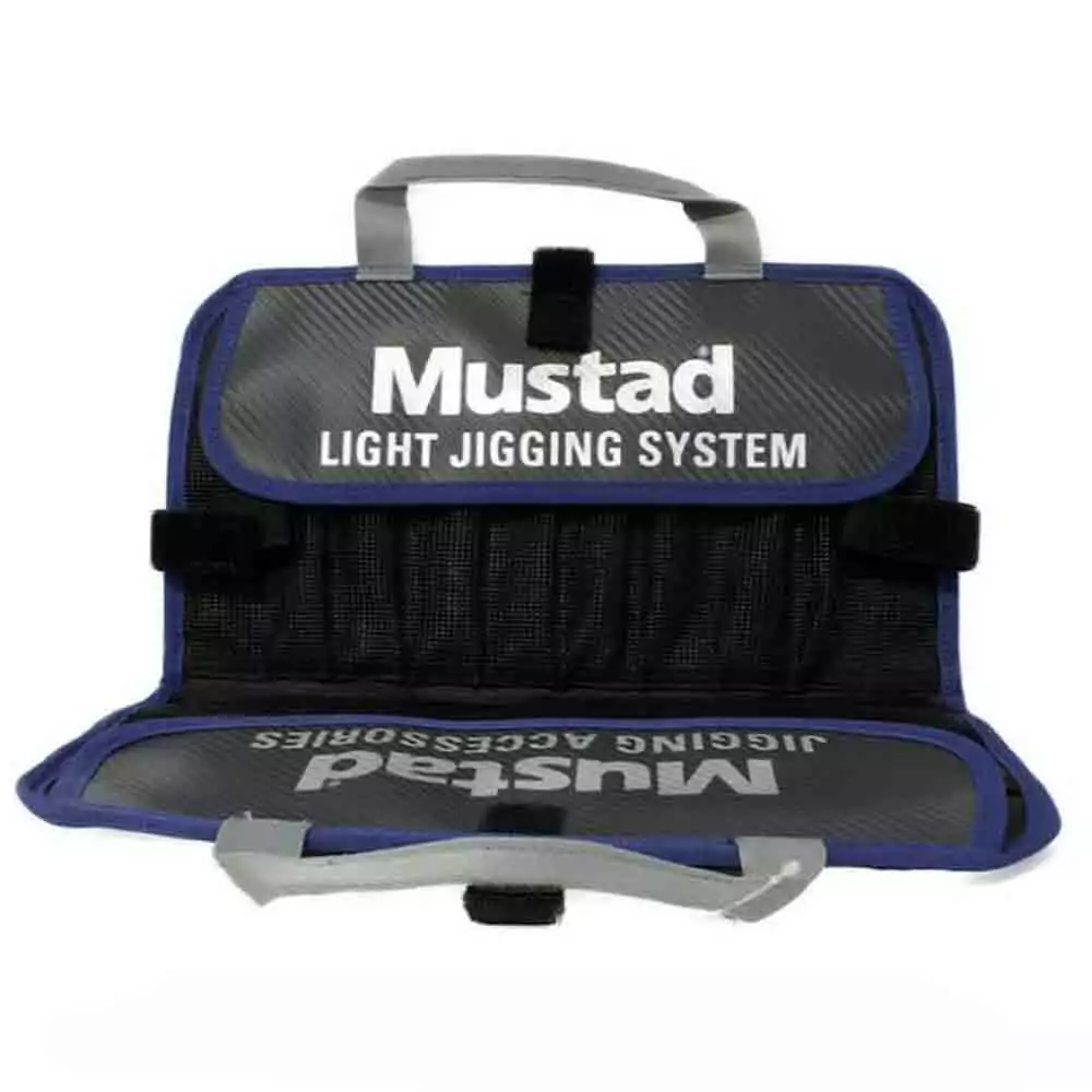 Keeping organized in the boat and at home is all part of the fun. The waterproof Mustad Jig Pouch Small features many pockets for lures and jigs constructed from a tough mesh material. The reversible pouch has12 slots for jigs up to 6”, 10 slots for smaller jigs of the same length, and 2 large pockets for jigging accessories. In total this practical wallet will accommodate 22 jigs plus room for assist hooks, leader material and much, much more. Features 500Denier Tarpaulin, one-handed carry handle, and velcro strap closure. The Mustad Jig Pouch Small is practical storage for your lures and tackle.