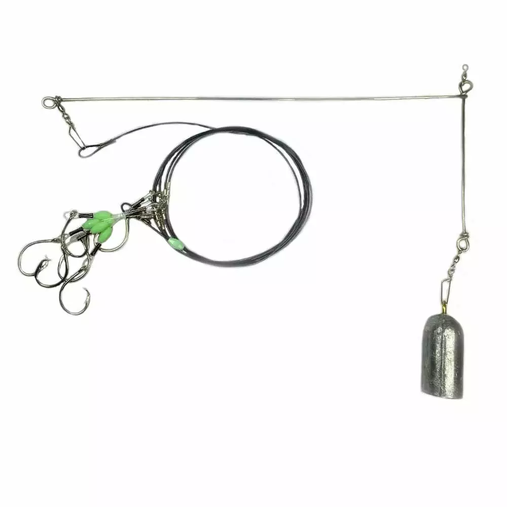 P-Line Rigged Tile Fish L Shaped Deep Drop Spreader Bar. The Rigged P-Line Tile Fish L Shaped Deep Drop Spreader Bar comes complete with a 3lb Stock Lead and a Deep Drop Tile Rig. This rig setup drops your line down beep where the big ones are without tangling your line. Sturdy stainless steel construction allows you the fish tangle-free by separating your line and weight as they descend to extreme depths. 20″ X 8″.