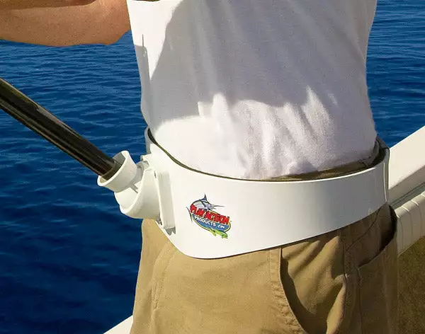 Prop 65 Warning CAPlayAction Snap On Rod Belt. Just spring the arms open and snap the belt in place about the hips. This belt is constructed with thick, rigid plastic that gives excellent distribution across the hips, and the closed cell comfort pad makes a floatable, comfortable belt that will not slip. The gimbal rotates almost 90 degree vertically and horizontally. The pin in the rotating ball can be used in either the vertical or horizontal position.