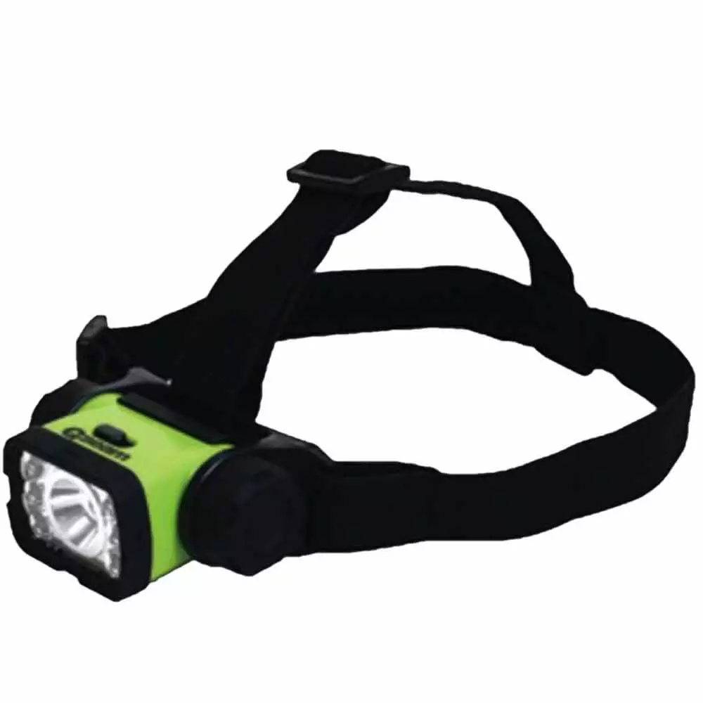 7 LEDs 1 White Cree XPG LED – 110 Lumens 4 Modes: Spot, Flood, Red Night Vision, and Green Map Reading Light Adjustable elastic headband Pivoting head swivels 90 degrees 3 x AAA Alkaline Batteries Included Beam Distance: 75 Meters Run Time: 7 Hours