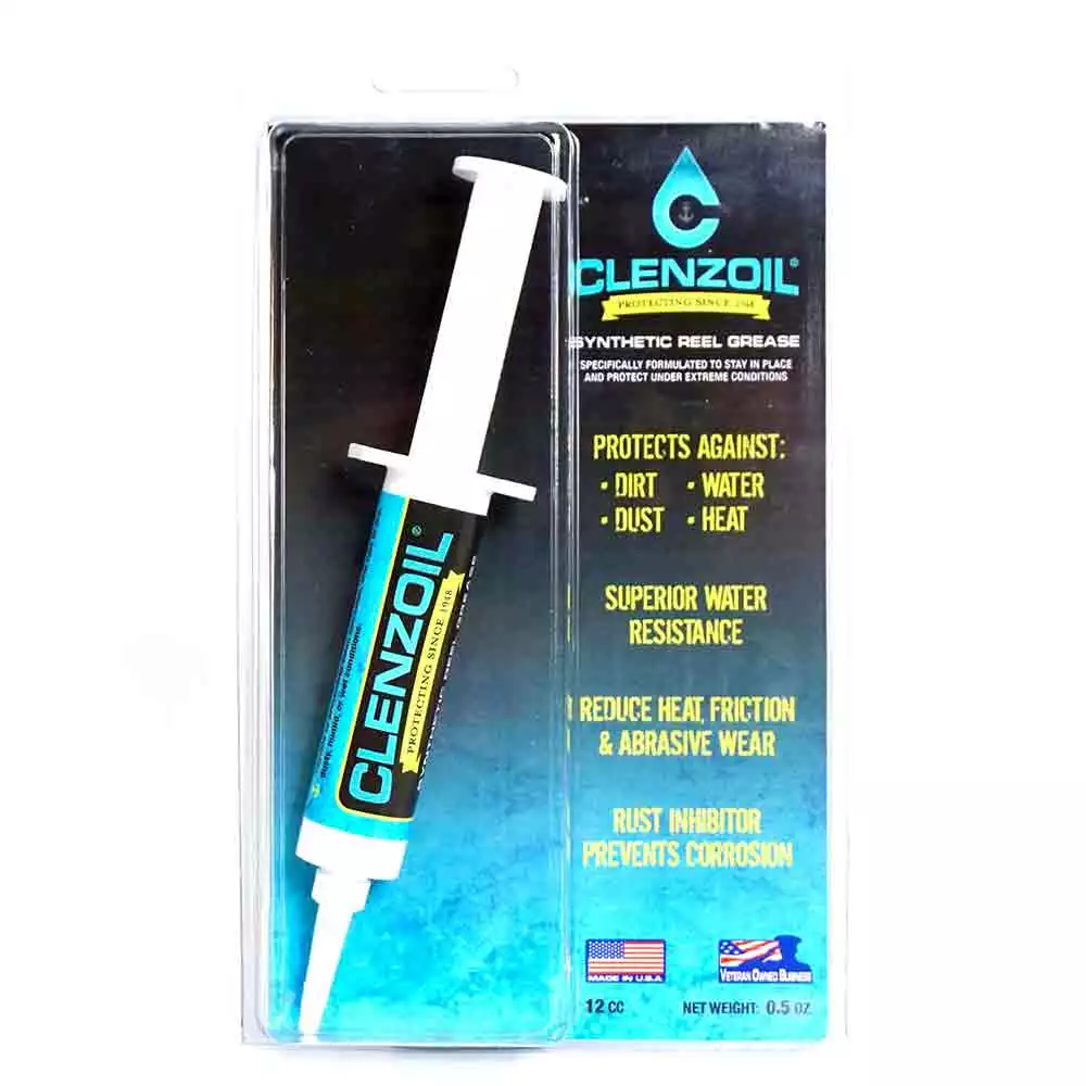 Clenzoil Synthetic Reel Grease is a high quality, synthetic grease specifically formulated to stay in place and protect fishing equipment under even the most extreme marine environments. The patented 100% full synthetic product is engineered to provide superior, long-lasting lubrication for any model/type fishing reel. Clenzoil Synthetic Reel Grease offers superior water resistance and won’t wash out during operation, even when totally submerged.