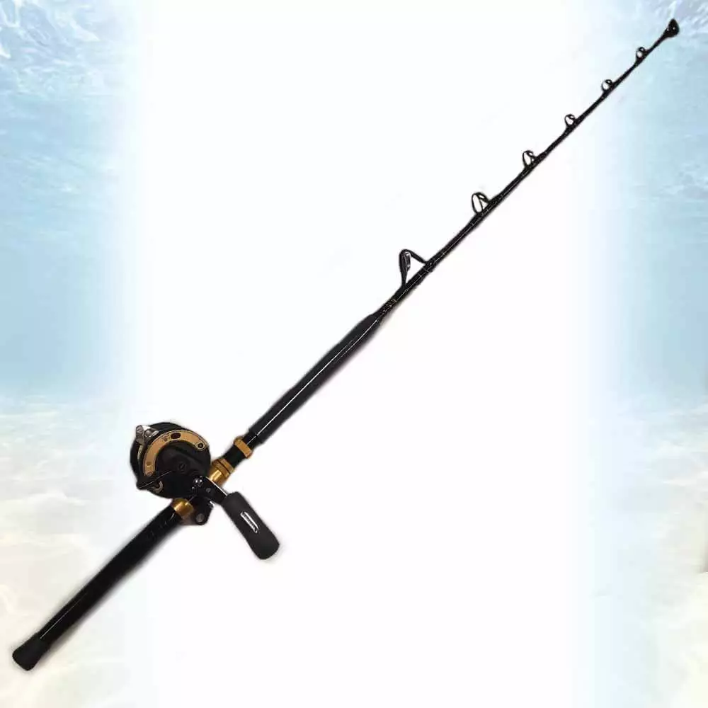 Features a Shimano TLD50IILRSA reel and a Capt. Harry’s CHCSA80 standup rod. May be fished with 50 or 80lb line and works great for Swordfish, Marlin, or Tuna.