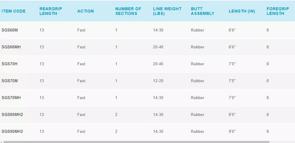 Saguaro is built out of T-Glass which is lighter and more responsive than traditional glass materials. They feature a graphite reel seat and EVA handles making them lightweight for all day fishing but extremely durable.