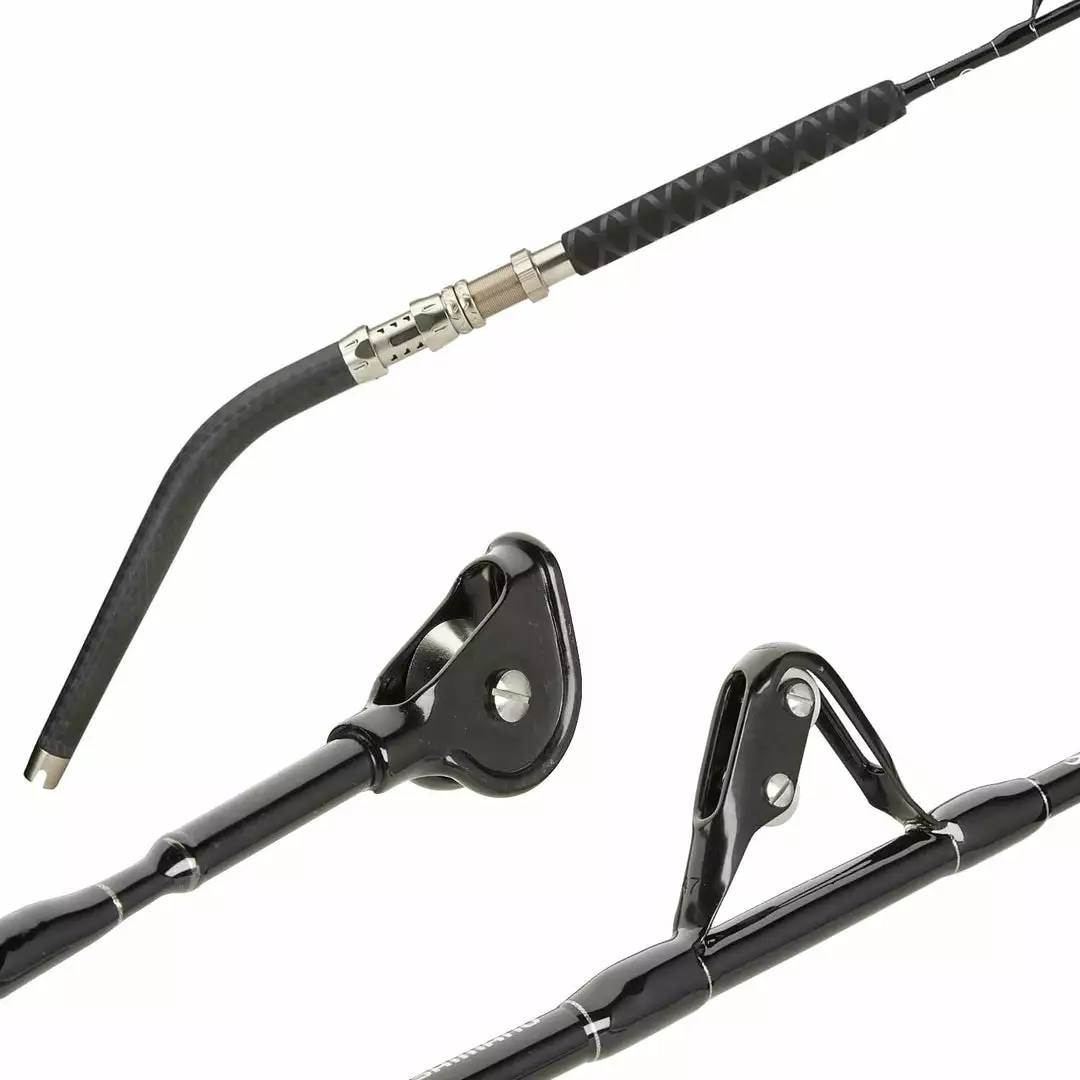 Prop 65 Warning CAKeeping up with the light weight reels today this rod series with its unique carbon butt section shaves off an incredible amount of weight but maintaining great strength. They feature Aftco roller guides from stripper to the tip. EVA with Shrink tube front grips with a custom shape to make it comfortable to pull on monster fish.
