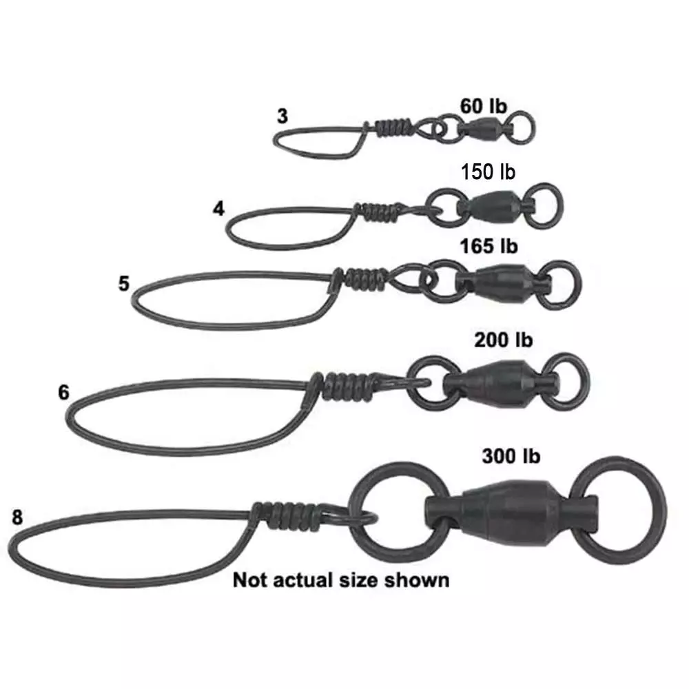 Sampo Black Tournament Ball Bearing Snap Swivels are designed to offer added insurance for tangle-free fishing. Features two welded rings, one at each end of Sampo swivel plus their famous super-strong tournament snap. Ball bearing, double solid ring with tournament snap. Excellent no-twist protection for big game fishing and heavy-duty trolling. Black finish. Sold by the dozen. Made in USA.