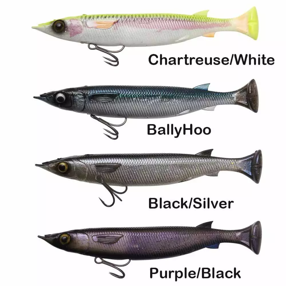 The ballyhoo: a baitfish that has earned the allegiance of saltwater anglers across the globe now, by virtue of Savage Gear’s patent-pending Pulsetail design, offers these anglers a lure as potent as the real thing. Equipped with built-in rattle and photoprint detail, the Ballyhoo is guaranteed to get the attention of predatory gamefish. Its line-thru design and heavy-duty hook make sure fish stay pegged during the wildest of acrobatic displays. Scent infused to trigger feeding and aggression.
