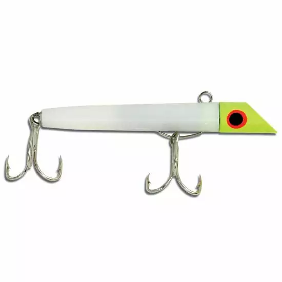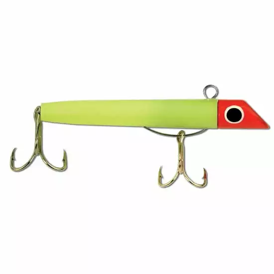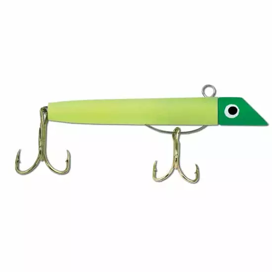Prop 65 Warning CAThe original Got-cha lure is excellent for Bluefish, Spanish Mackerel, Trout and other fish that feed on small baitfish. When reeling, use short sharp jerks to produce a deadly swimming action. The 100 series has a plastic body, weighs 7/8 oz is 3″ long.