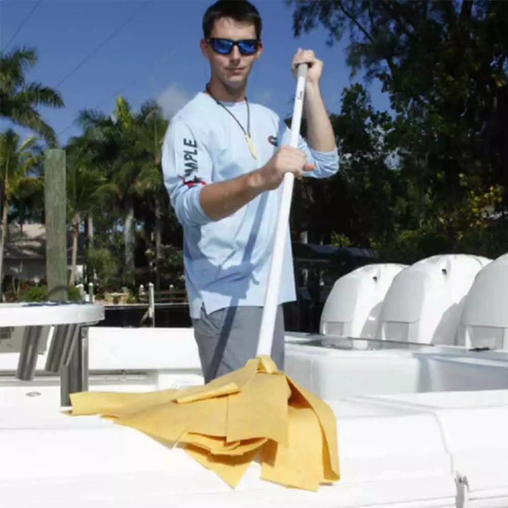 Shurhold Water Sprite Mop With Wooden Handle. The World’s Best Water Sprite Mop…on a stick. The same quality Water Sprite Mop on a high quality bamboo handle finished with a durable and smooth enamel paint. Better yet, they naturally float if dropped into water, so you won’t easily lose them overboard. The best wood handle mop you can buy. This deck mop and handle come as one piece, so it is not compatible with other Shurhold handles. Made in USA.