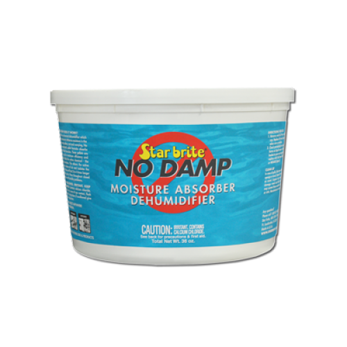 Prop 65 Warning CAStar Brite 12oz No Damp Dehumidifier. No Damp Dehumidifier is the effortless way to help control the excessive humidity that leads to musty odors, stains or corrosion aboard stored boats, RVs or seasonal homes. The special pellets automatically remove moisture from the air, depositing it safely in the convenient container. Great for cabins, heads, closets, and other enclosed spaces. Designed to help prevent musty odors in stored boats, RVs or seasonal homes. Absorbs airborne moisture to help prevent mildew smells. Eliminates mildew odor and other musty odors.