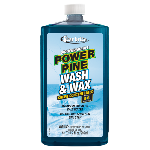 Prop 65 Warning CAStar Brite 32oz Power Pine Wash & Wax. Use to clean, shine and protect all fiberglass, painted surfaces, glass, plastic and metals. Concentrated formula makes 96 gallons (32 fl. Oz. size). Works in fresh or salt water.