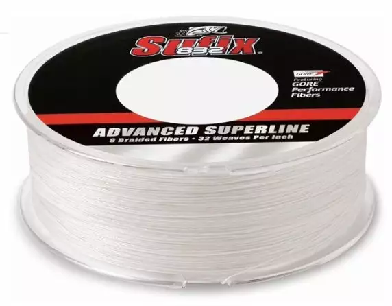 Sufix 832 600 Yds Ghost White Braid. Sufix 832 600yds Advanced Superline Braid. A strong, durable, small diameter braid made with a patent-pending construction of 8 fibers (7 Dyneema® fibers plus 1 Gore®) and 32 weaves (pics) per inch. Gore® performance fibers improve abrasion resistance, increase casting length, accuracy & reduce line vibration. Dyneema® fibers provide high strength & sensitivity, small diameter & hydrophobic water-repellent protection. Color Ghost White.
