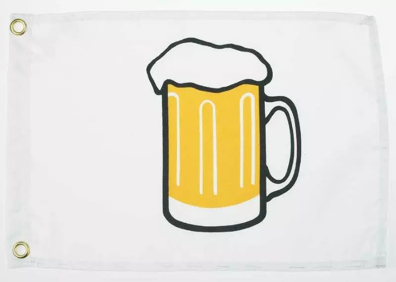Prop 65 Warning CABeer Outrigger Flag. Rectangular flag 18″w x 12″h.