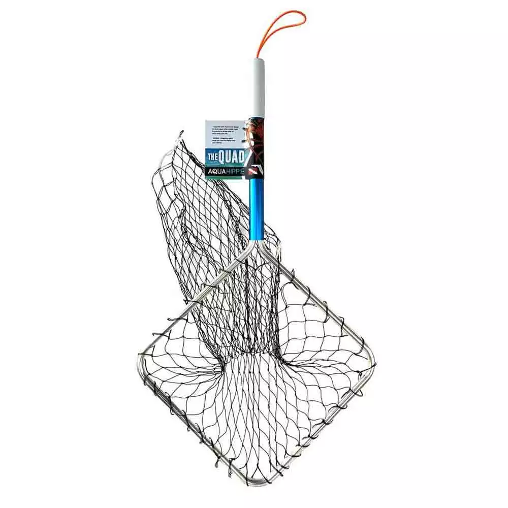 The Quad Lobster Net by Aqua Hippie allows you to upgrade your lobstering game. The Quad Lobster Net with ergonomic design for diver ease offers better hoop to ground coverage and an extra-deep poly net. Features a 12” square hoop, 14” handle and 24” deep net. For longevity Rinse your net with fresh water after each use.