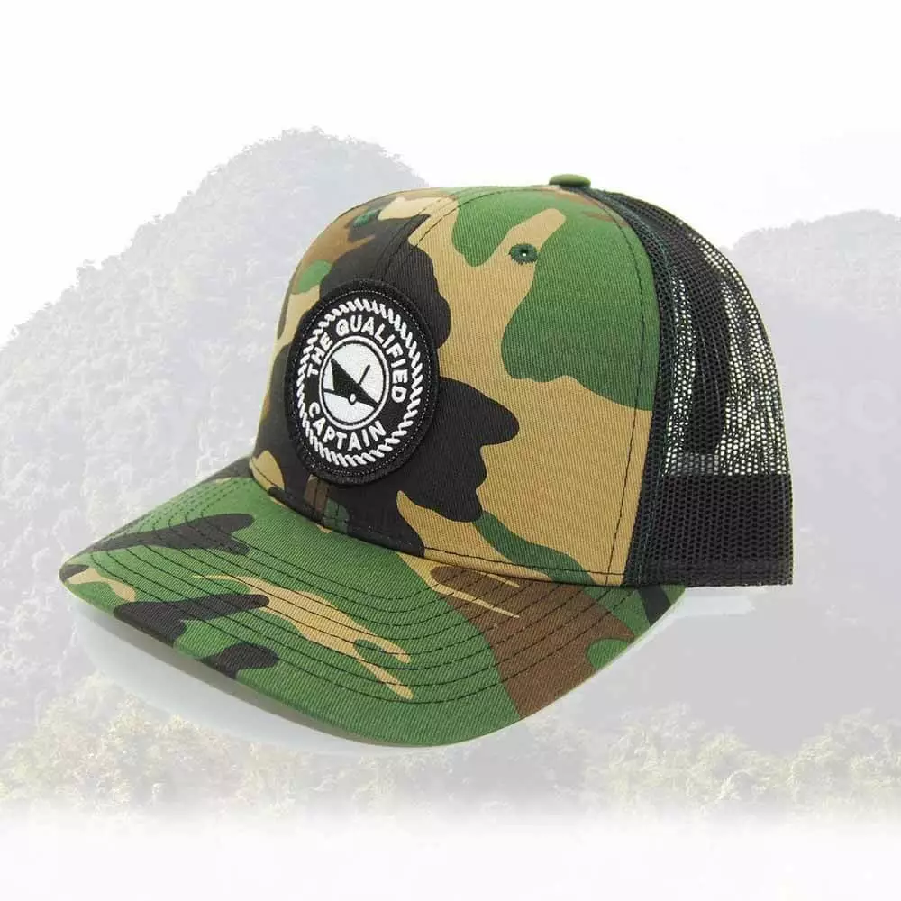 The Qualified Embroidered Patch Green Camo/Black Trucker Hat