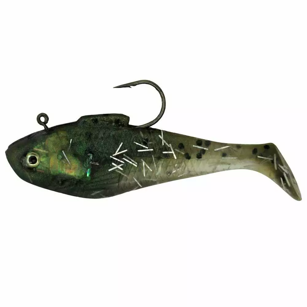 The reflective effect of the Holographic Swim Shad Soft Bait creates flashes of light in the water that attract game fish from all around. In addition, the realistic 3D eyes and lifelike swimming action of this bait entices predators to strike. Constructed with a durable vinyl body and featuring a Premium Mustad Ultra Point black nickel hook, the Tsunami® Holographic Swim Shad Soft Bait takes the hits and keeps swimming.