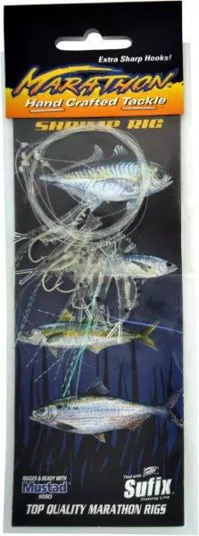 Tsunami Monofilament Sabiki Shrimp Bait Rig. Easy to use and used by many bait fishermen. Attach your line to the swivel and lead to the snap and you are ready to catch bait.