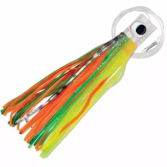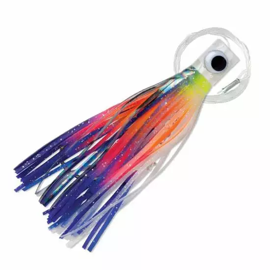 Williamson Rigged Dorado Catcher Lure. This flat-faced pusher style features a large cavity in the rear of the head specially designed to take a ballyhoo rigging spring. This allows you to get the bait in close to the head and skirt of the lure, giving the bait better protection at desired hiThis flat-faced pusher style features a large cavity in the rear of the head specially designed to take a ballyhoo rigging spring. This allows you to get the bait in close to the head and skirt of the lure, giving the bait better protection at desired higher trolling speeds. A great Dolphin and Sailfish lure.