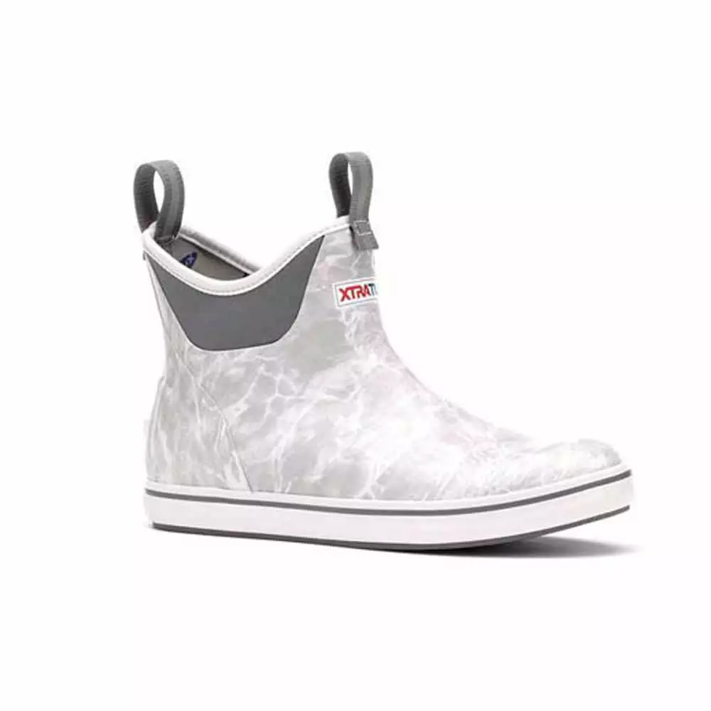 The Ankle Deck Boot collection has been crafted specifically for Off-Shore anglers. Anglers are athletes, and like any athlete they need the best footwear to help them perform at the highest level. We’ve created a lightweight design with the same slip-resistant Chevron outsole found in our Legacy boots. The performance ankle deck boot is the perfect boot for any on the water athlete looking for protection with slip-on-and-go styling. This Mossy Oak™ Elements version features Bone Fish camouflage print. This boot is constructed with hand-layed rubber, therefore it’s not a commercial grade boot.