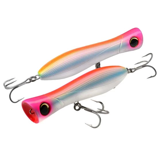 Yo-Zuri R1155 Floating Bull Pop. The Bull Popper has been redesigned with added features and a lower price point. This versatile popper comes in two sizes and ten color patterns to cover a variety of inshore and offshore fishing applications. Perfectly weighted for long distance casting, the Bull Popper is ideal for surf casting for Striped Bass, Jack Crevalle or Roosterfish or for casting to breaking schools of Tuna and Dorado from the boat. Yo-Zuri has upgraded the new Bull with their patented Power Body, 3X treble hooks and through wire construction to give it the durability to handle any trophy inshore or offshore fish. The large cupped mouth creates extreme surface commotion that draws fish in from long distances.